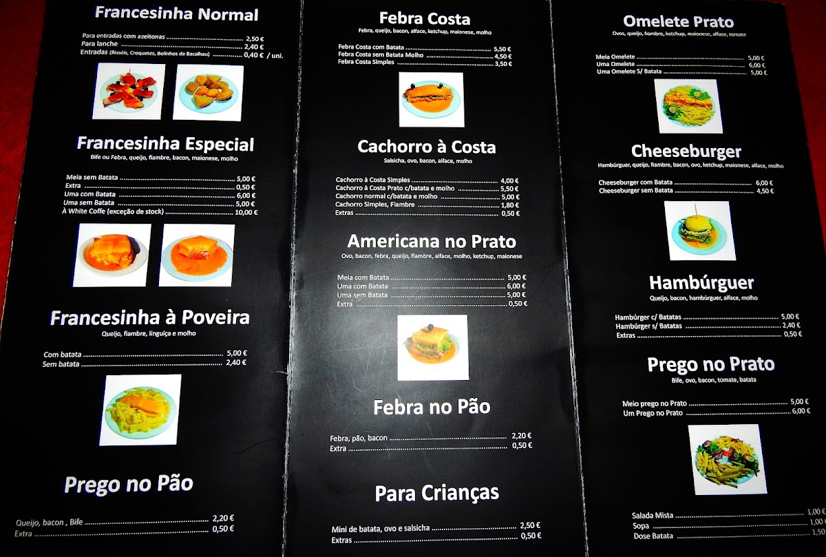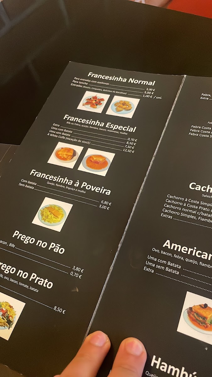 Welcome to White Coffe, a charming café located at Av. Nossa Sra. das Neves N°72 in A Ver-o-Mar, Portugal. This vibrant spot offers a delightful menu that emphasizes hearty Portuguese fare, particularly famous for its Francesinha sandwiches. Guests rave about the Francesinha Especial De Febra (€6.90), loaded with pork, cheese, and their signature spicy sauce, perfectly complemented by crispy fries.